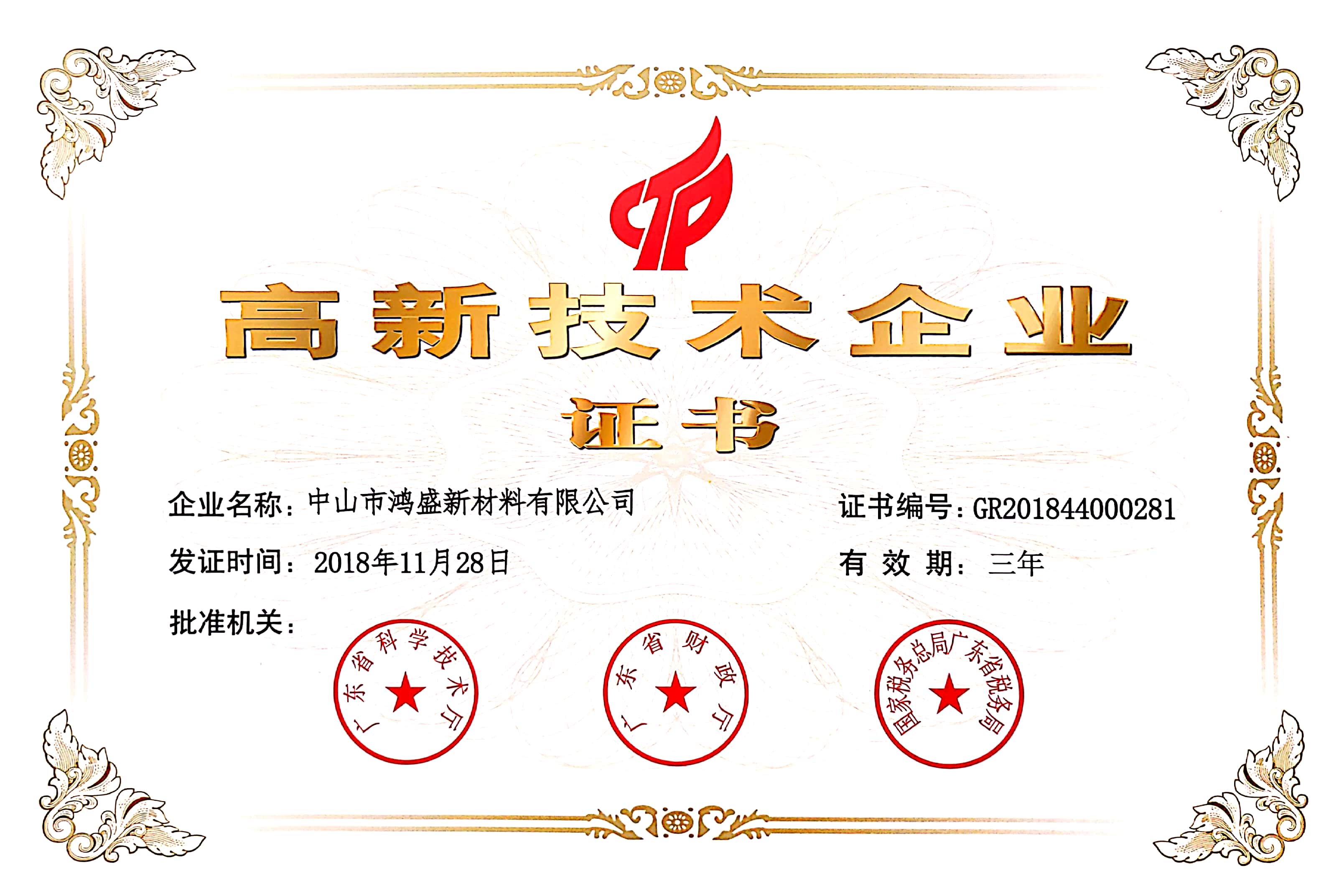 鴻盛高新技術(shù)產(chǎn)品證書(shū) |